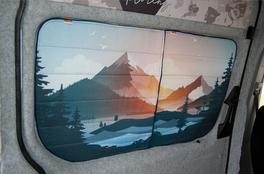 Larger Vans - Side Door (UK Drivers side) Campervan Window Blind Cover Set - Mountain View