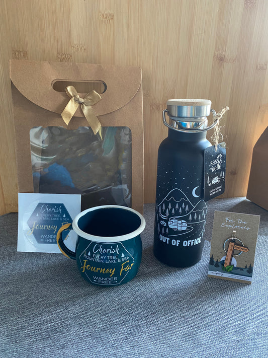 Campervan Gift Box Hamper Set - Enamel Mug, Sass & Belle water bottle plus keyring