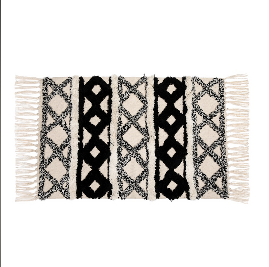 Sass & Belle Scandi Boho Tufted Campervan Rug - Black/White/Ivory