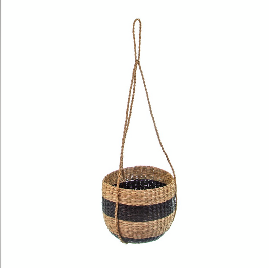 Sass & Belle Black Stripe Seagrass Hanging Planter