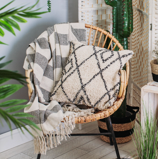 Sass & Belle Scandi Berber Diamonds Tufted Cushion - Black/White/Ivory