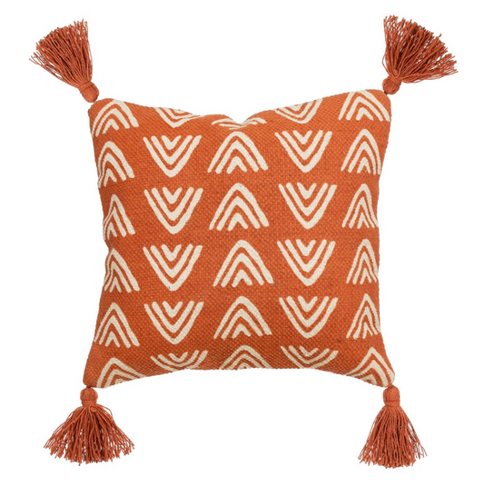 Sass & Belle Boho Triangles Block Print Cushion - Terracotta